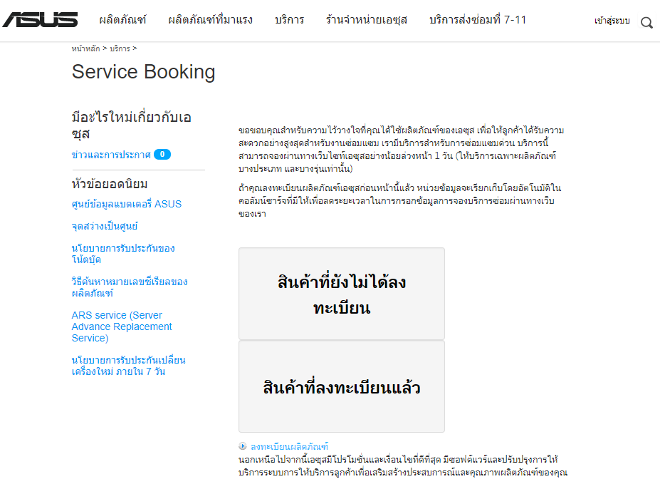 2. คลิก https://www.asus.com/th/support/rcbooking เพื่อเริ่มทำรายการ